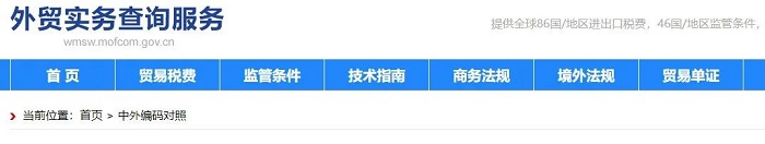 http://wmsw.mofcom.gov.cn/wmsw/toolBox/codeContrast