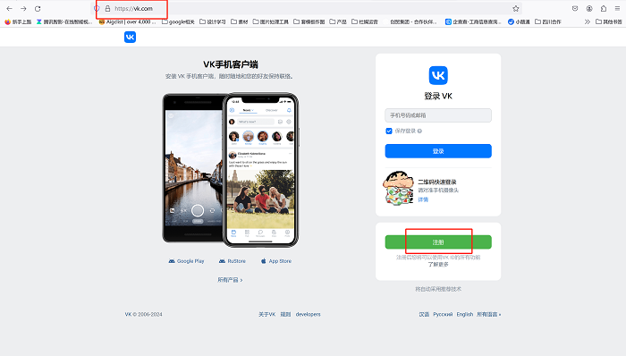 1.瀏覽器搜索vk.com進入網(wǎng)址后跳轉到注冊登錄界面