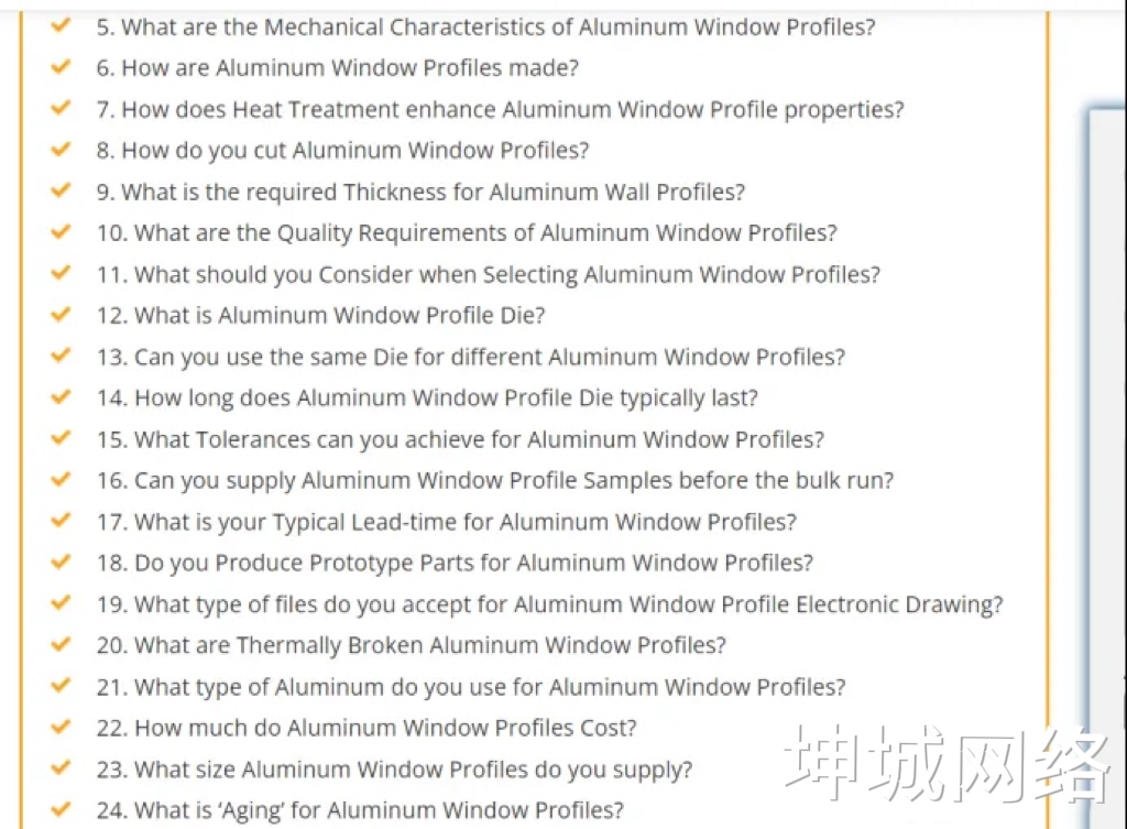 他們重點(diǎn)優(yōu)化了一些分類頁,如“T - slot aluminum profile”“Windows and Doors Profiles”“Standard Aluminum Extrusions”等。