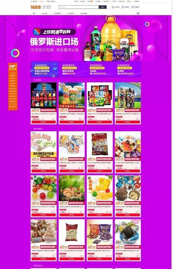 世界杯期間,1688俄羅斯國家館正式上線,這是俄羅斯政府指定重要對華出口食品貿(mào)易協(xié)會(huì)(俄羅斯食品生產(chǎn)者與供應(yīng)者協(xié)會(huì)上海代表處)與1688進(jìn)口市場聯(lián)合上線的采銷平臺。