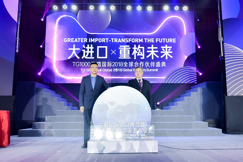 天貓進出口總經(jīng)理劉鵬和中國國際進口博覽局副局長劉福學在天貓國際全球進口峰會共同開啟合作儀式