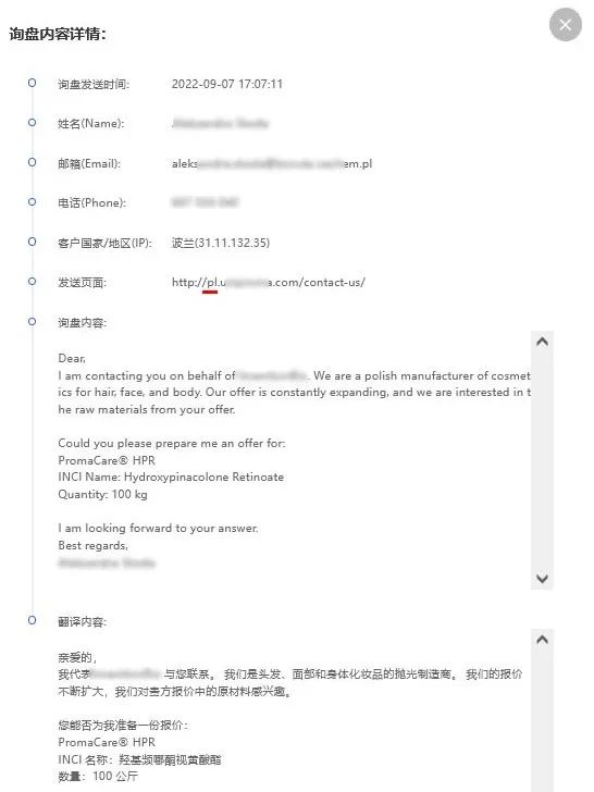 全球搜客戶小語種網(wǎng)頁詢盤部分展示