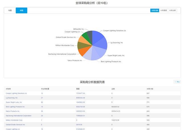 最新進(jìn)出口交易記錄,幫你了解客戶是否正在從中國采購,以及采購產(chǎn)品、采購頻次、采購數(shù)量、采購價(jià)格等信息,從而判斷客戶的質(zhì)量和匹配度。